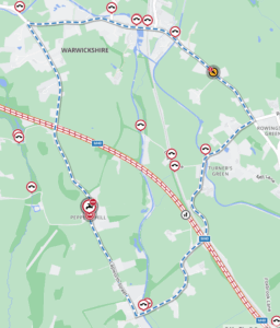 An alternative route is available via Lapworth Street, Old Warwick Road, Finwood Road, Mill Lane and vice versa.