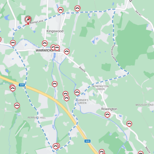 An alternative route will be signed and is available via: Rising Lane, Haywood Lane, Rowington Green, Finwood Road, Mill Lane, Lapworth Street, Old Warwick Road, Packwood Lane and vice versa.